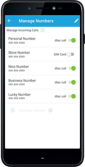 As easy as it sounds! Go to Manage Number menu and choose incoming call channels; either “dtac call” or “SIM card”