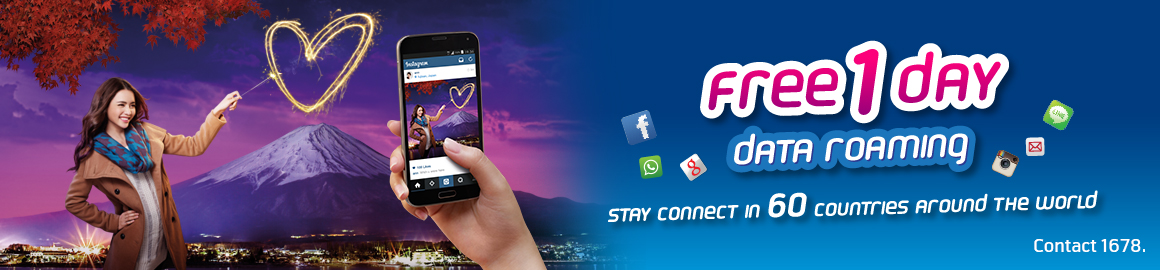 Stay connected in 60 countries around the world. dtac gives away 1-day data roaming FREE trial. Please contact 1678 dtac call center to receive this privilege.