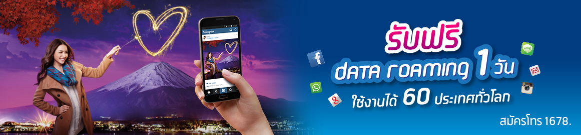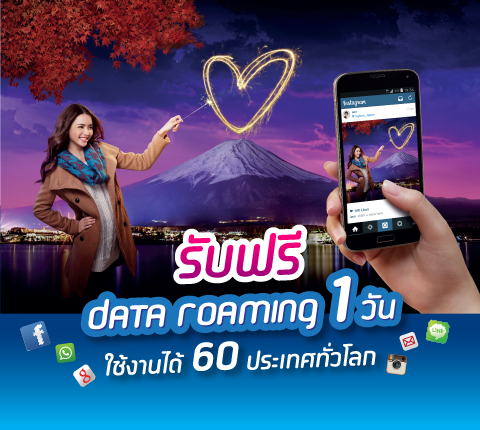 - ระยะเวลาทดลองใช้งาน data roaming ฟรี 1 วัน สามารถขอรับสิทธิ์และใช้งานได้ระหว่างวันที่ 1 – 30 เมษายน 2558 เท่านั้น